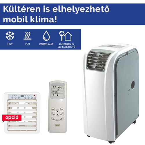 A Flexi csomag a mobil klíma készüléket tartalmazza 1 db 1,5 méteres légcsővel és infra távirányítóval.